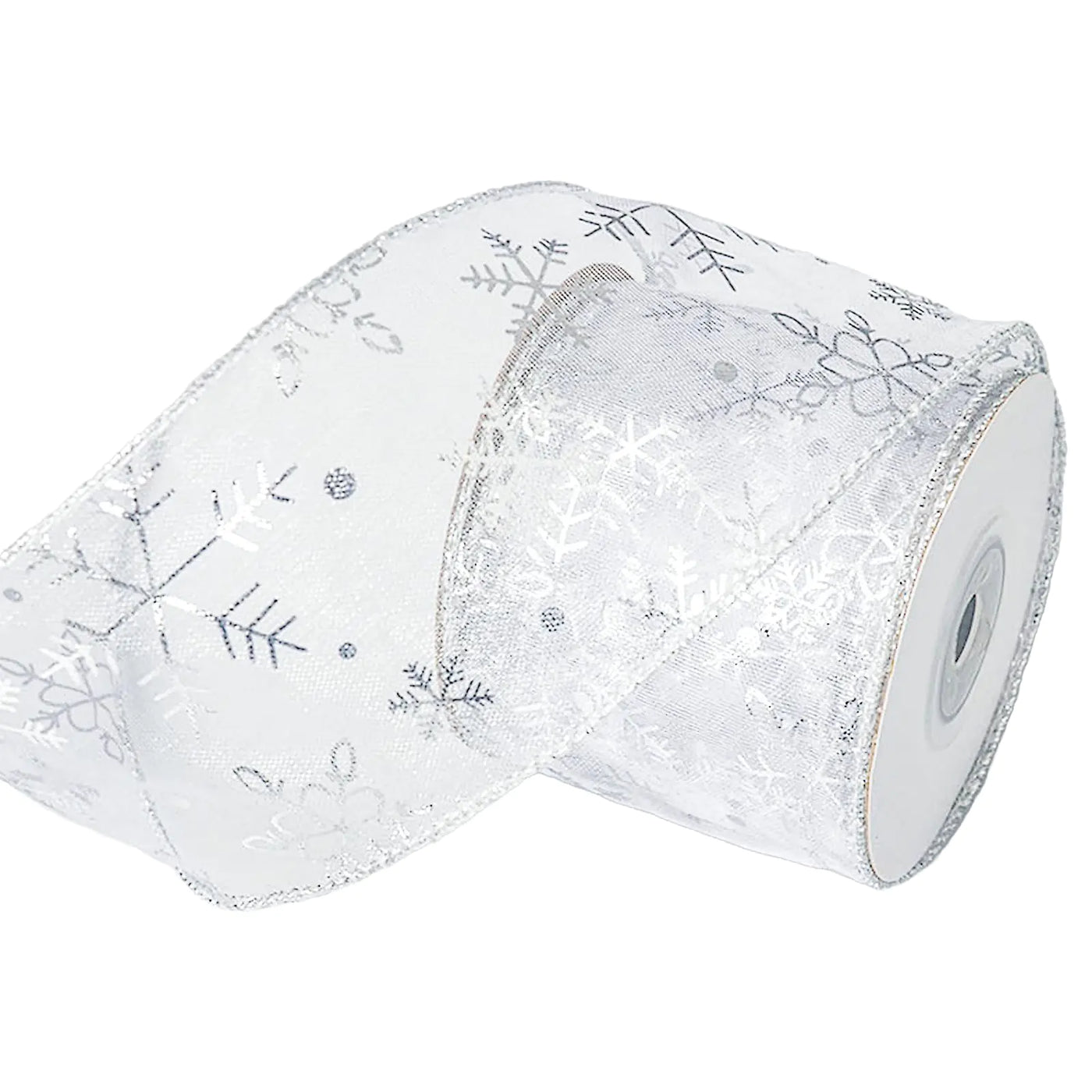 Measuring 2.5 inches wide and 10 yards long, this Silver Snowflake Organza Ribbon is crafted from shimmering organza glitter and a slim, flexible metal wire. Lightweight and soft, it bends and twists easily, letting you create any shape you dream up. The ribbon's metal-edged sides help keep your designs perfectly in place. Ideal for wrapping gifts, sprucing up flower bouquets, or adding festive cheer to Christmas trees, wreaths, and more, its sparkling snowflake pattern brings extra sparkle and holiday magic everywhere you use it!
